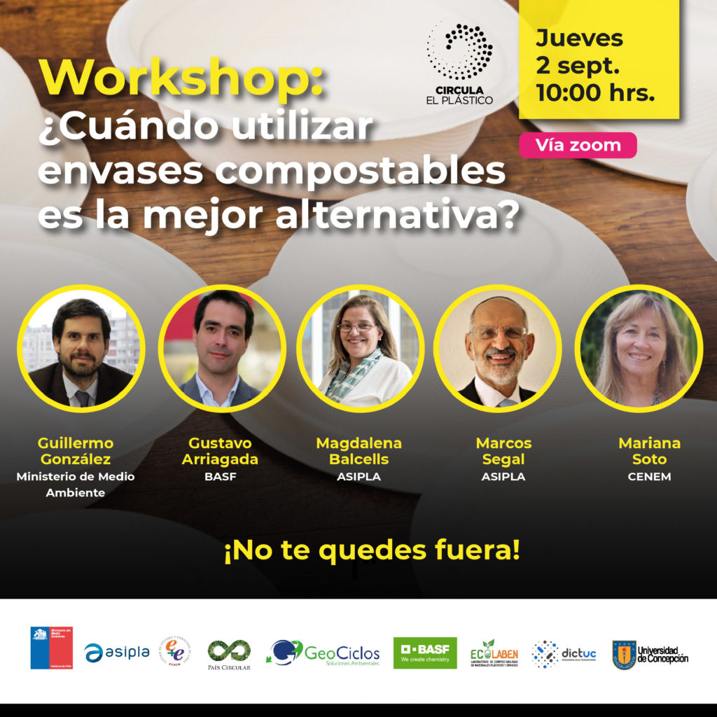 El Pacto Chileno de los Plásticos, Circula el Plástico, te invita este jueves 2 de septiembre de 10:00 a 11:30 am, a ser parte del “Workshop: ¿Cuándo utilizar envases compostables es la mejor alternativa?”, que tiene como objetivo aclarar conceptos y prácticas asociadas a los envases de plásticos compostables, con el fin de ayudar a empresas y emprendedores a tomar decisiones en relación a cuándo es óptimo utilizar este tipo de alternativas.