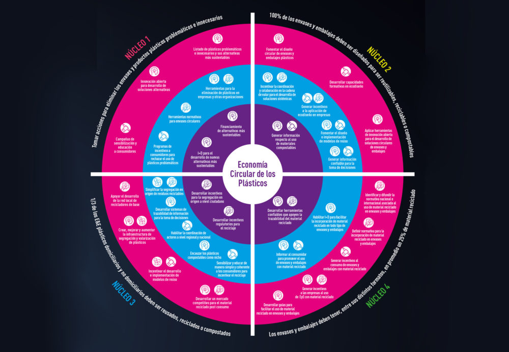 The Roadmap seeks to become the national strategy for the use of plastic elements transitioning towards a circular economy, where plastic has no impact on the environment. The goal is to guide the action plan of the Chilean Plastics Pact and provide concrete guidelines at a national level to all actors involved in the plastics value chain in order to share a common vision and guide their strategies.