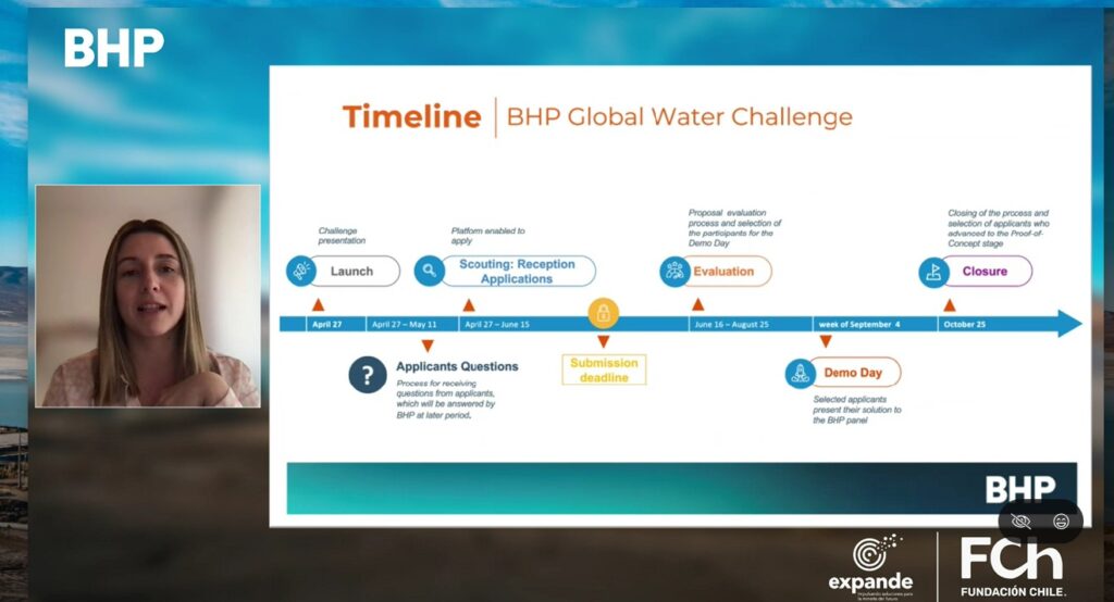 La convocatoria global busca abordar diversos desafíos que BHP está enfrentando en sus operaciones Escondida, Legacy Assets, Nickel West y Olympic Dam. Entre los desafíos se encuentra la minimización de la descarga de salmuera proveniente de la osmosis inversa; tratamiento de aguas ácidas acumuladas en rajos no operativos; tratamiento de aguas subterráneas hipersalinas; tratamiento de efluentes neutros provenientes de lixiviación; y tratamiento y reutilización de relaves recuperados.