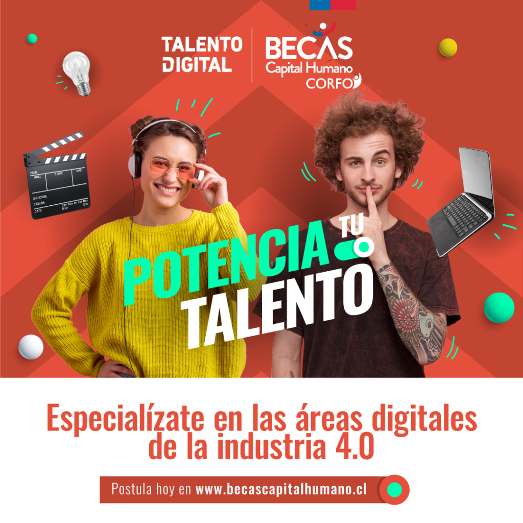 - El programa “Potencia tu Talento” incluye becas para cursos orientados a profesionales y emprendedores de todo Chile que quieran actualizar sus conocimientos y herramientas digitales. Las postulaciones son hasta el 7 de octubre.