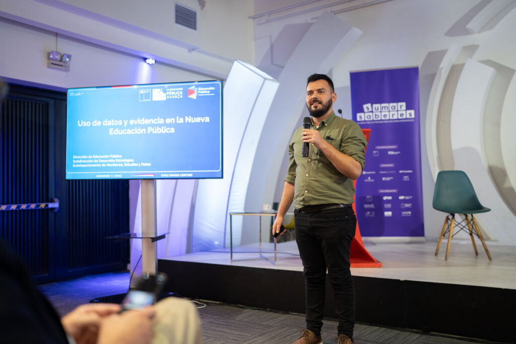Durante el panel de conversación, se abordó cómo el uso de datos puede transformar la toma de decisiones en el ámbito educativo. El primero en presentar fue Maximiliano Tham, jefe de Monitoreo, Estudios y Datos de la Dirección de Educación Pública (DEP), quien explicó la situación actual de la Nueva Educación Pública (NEP), los cambios que ha traído este sistema y cómo los servicios locales han desarrollado diversas prácticas de monitoreo de datos.