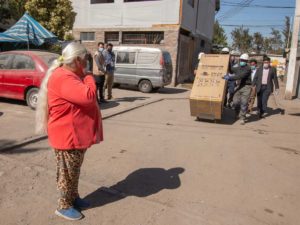 Al momento del recambio del refrigerador de Rosa Cordero, asistió la alcaldesa de Lo Espejo, Javiera Reyes, y representantes de las instituciones impulsoras de #Refriclaje: el subsecretario de Energía, Julio Maturana; el subsecretario de Medio Ambiente, Maximiliano Proaño; Karien Volker; subgerenta de Consumo y Producción Sustentable de Fundación Chile; Pablo Urbina, subgerente de Sostenibilidad de Sodimac, y José Luis Rojas, gerente de Regener Chile.